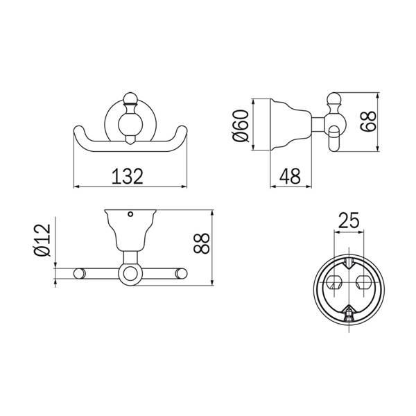 Крючок двойной INDA Raffaella 132х68х88 мм бронза