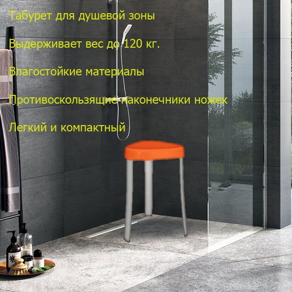 Стульчик для ванной на алюминиевых ножках с противоскользящими наконечниками.