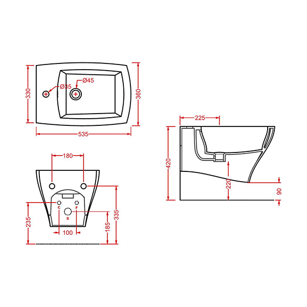 Биде подвесное ARTCERAM Jazz 360х540х310 мм JZB001 01 00 РАСПРОДАЖА