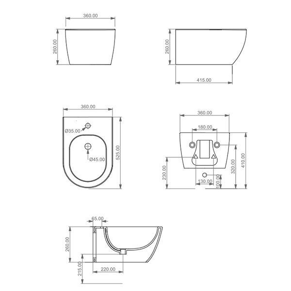 Биде подвесное GSG Ceramic Design Like 360х525х260 мм LKBISO003:
