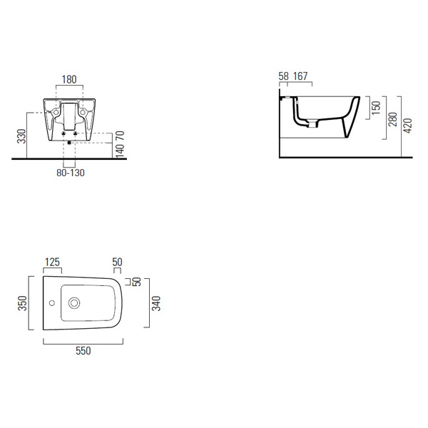 Биде подвесное с креплением GSI Nubes 550х350х280 мм 9665FR2111: