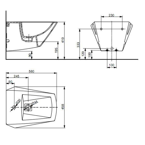 Биде подвесное TOTO Jewelhex 450х560х320 мм BT682V1