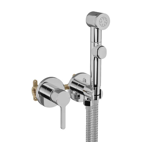Душ гигиенический со смесителем встраиваемый IDDIS Axes хром глянцевый, крючок и душевой шланг 1,5 м в металлической оплетке AXESBR2i08