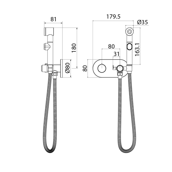 Гигиеническая лейка, крючок и душевой шланг (1,5) в металлической оплетке в комплекте.