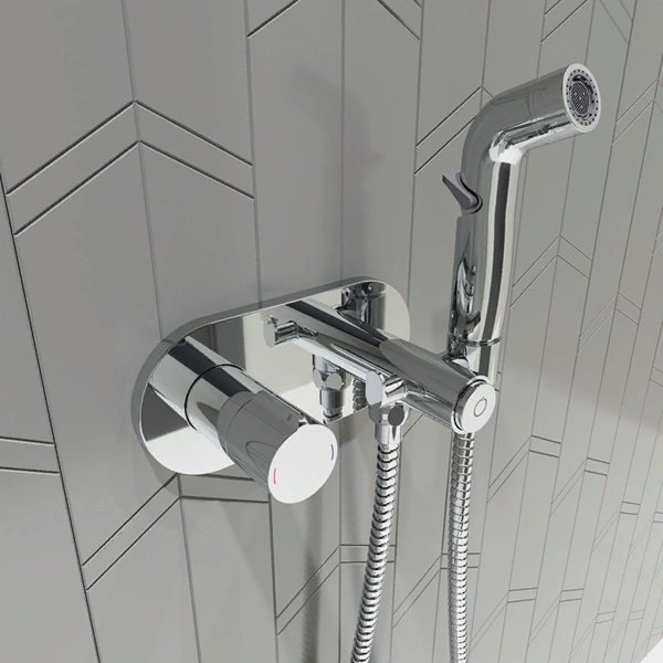 Компактная лейка фиксируется непосредственно в самом смесителе, что экономит пространство, а скрытый монтаж в стену позволяет сохранить эстетичный внешний вид любого современного санузла