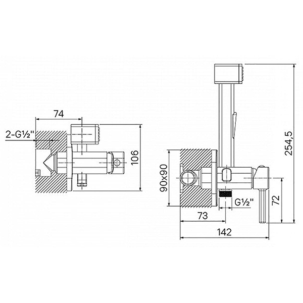 Встраиваемый смеситель с гигиеническим душем в стильном матовом черном цвете станет отличным дополнением современной ванной комнаты, привнесет в нее комфорт и эстетику.