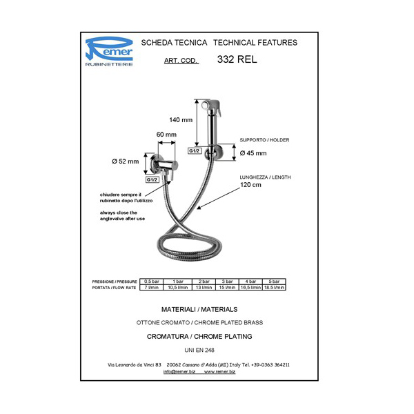 При каждом использовании, после закрытия крана, нажмите на клавишу душ-пистолета для сброса остаточного давления. Сделано в Италии.