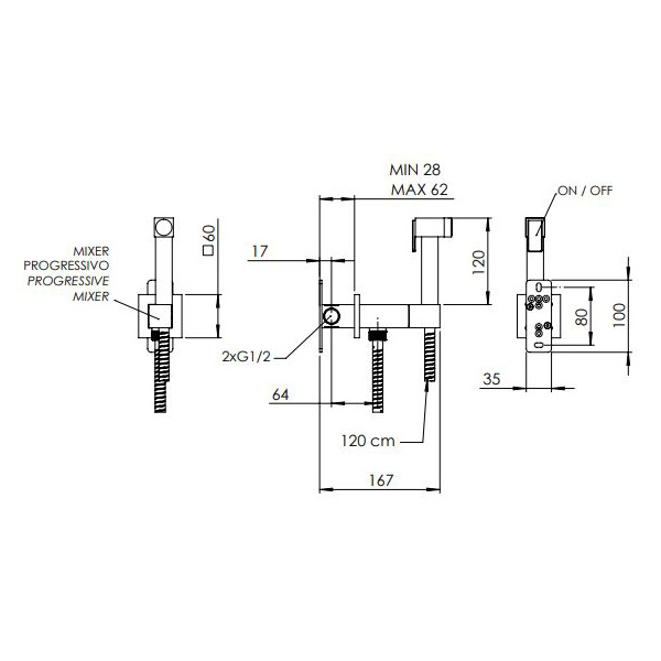 Душ гигиенический встраиваемый с прогрессивным смесителем REMER Qubika черный матовый скрытая часть в комплекте Q64NO