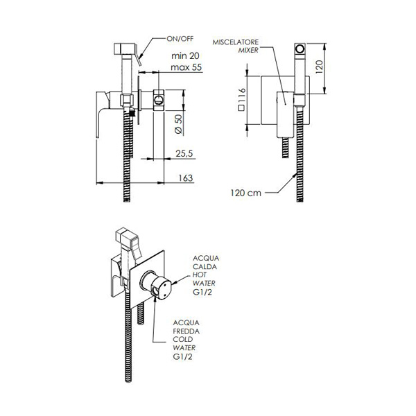 Душ гигиенический встраиваемый со смесителем REMER Absolute черный матовый AU65NO