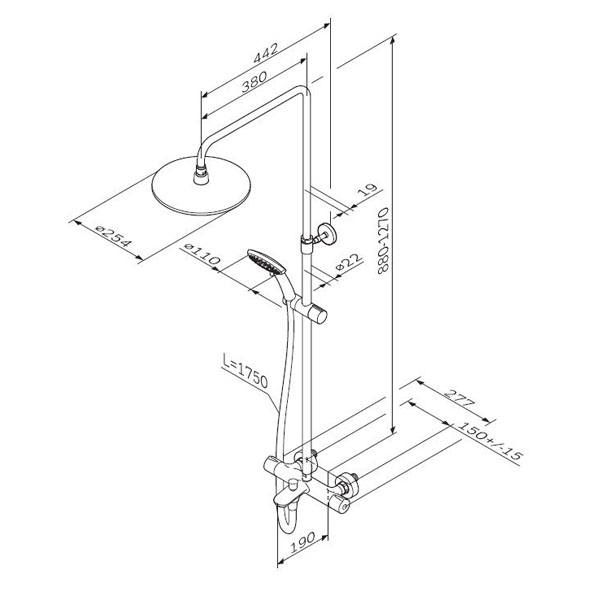 Душевая система AM.PM Like 254 мм 3 jet с термостатическим смесителем для ванны F0780564