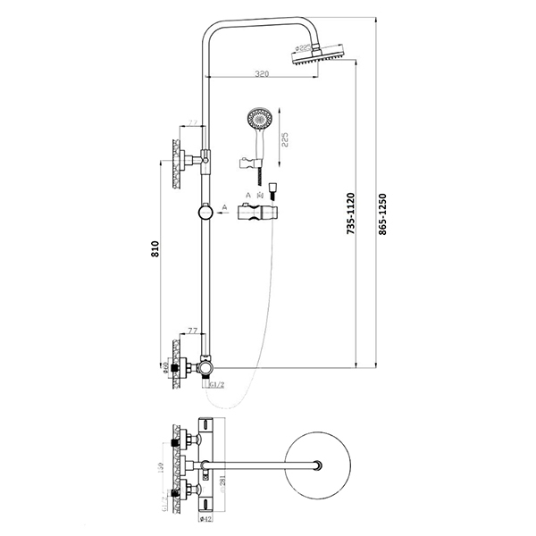 Душевая система с термостатическим смесителем AQUANET Agger Thermo черный матовый A2451244
