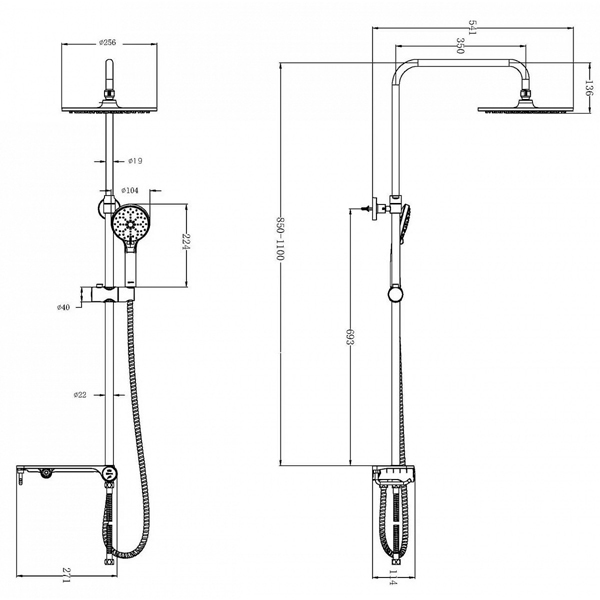 Душевая система без смесителя LEMARK с полочкой LM8810C