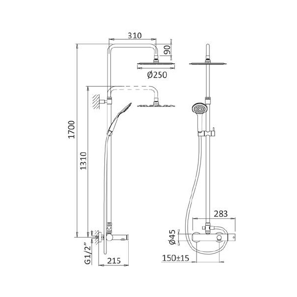 Душевая система HANSGROHE Croma E Showerpipe 280 1jet 27630000Душевая система NOBILI Seven 245х245 мм Velvet black SE124030/50BM