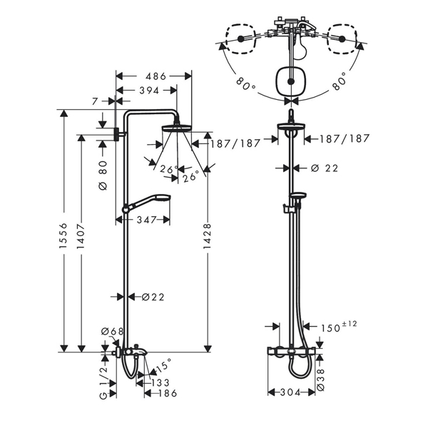 HANSGROHE Croma Select E 180 2jet Showerpipe 27352400: