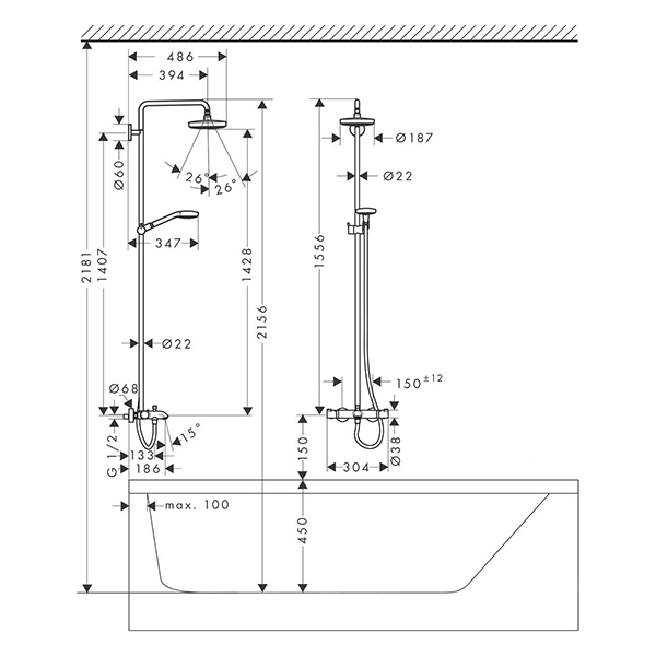 Душевая система HANSGROHE Croma Select S Showerpipe 180 2jet 27351400: