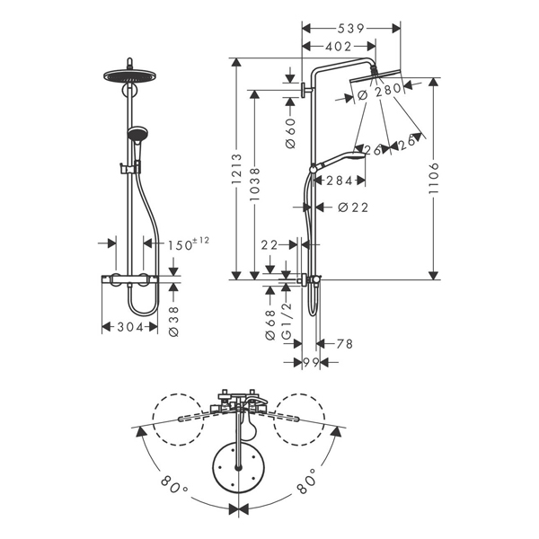 HANSGROHE Croma Select S Showerpipe 280 1jet 26790000: