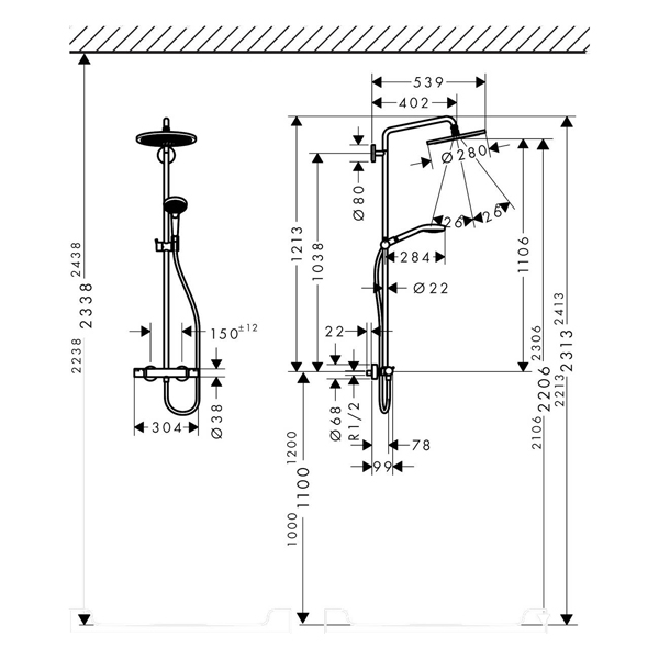 Душевая система HANSGROHE Croma Select S Showerpipe 280 1jet с термостатическим смесителем для душа 26790000