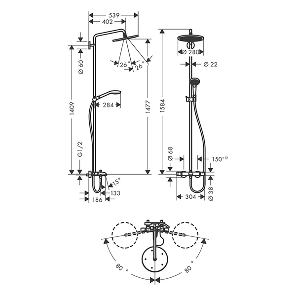 Душевая система HANSGROHE Croma Select S Showerpipe 280 1jet 26792000: