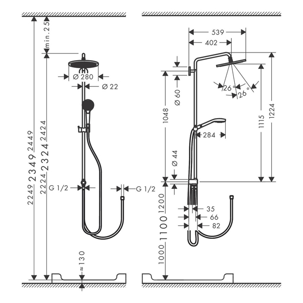 Душевая система HANSGROHE Croma Select S Showerpipe 280 1jet Reno 26793000: