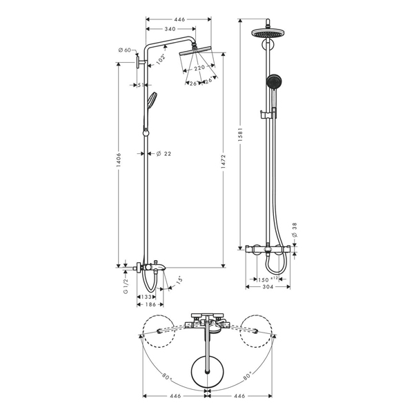 HANSGROHE Croma Showerpipe 220 1jet 27223000: