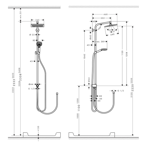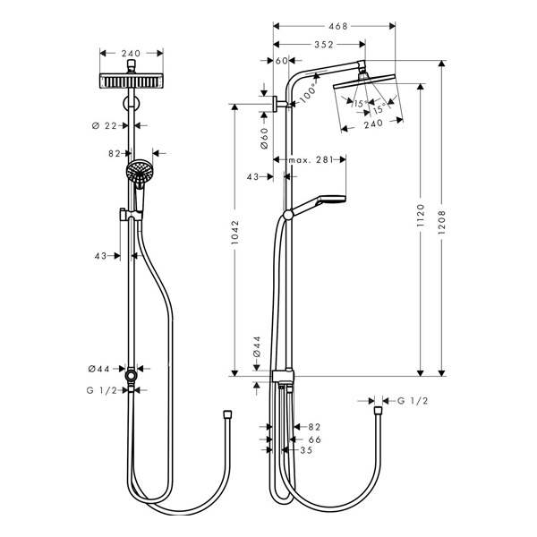 Душевая система HANSGROHE Crometta E Showerpipe 240 1jet EcoSmart Reno 27289000Душевая система с термостатом RAVAK Termo 10 TD 091.00/150 X070103