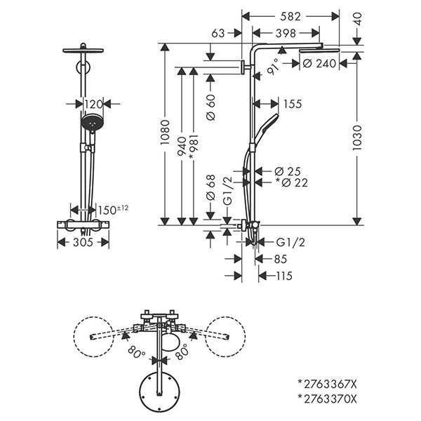 HANSGROHE Raindance Select S Showerpipe 240 1jet PowderRain 27633000: