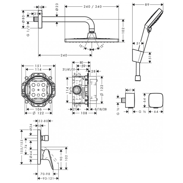 Душевая система KLUDI Logo Dual Shower System черный матовый 6808239-00Душевая система с термостатическим смесителем TOTO TBW01404R