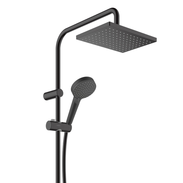Душевая система HANSGROHE Vernis Shape Showerpipe 230 1jet 230х170 мм 26286670Душевая система HANSGROHE Vernis Blend Showerpipe 200 1jet черный матовый 26276670