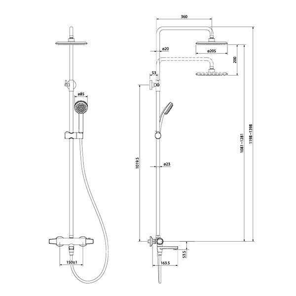 Диаметр ручного душа - 85 мм Верхний душ - 194 мм
