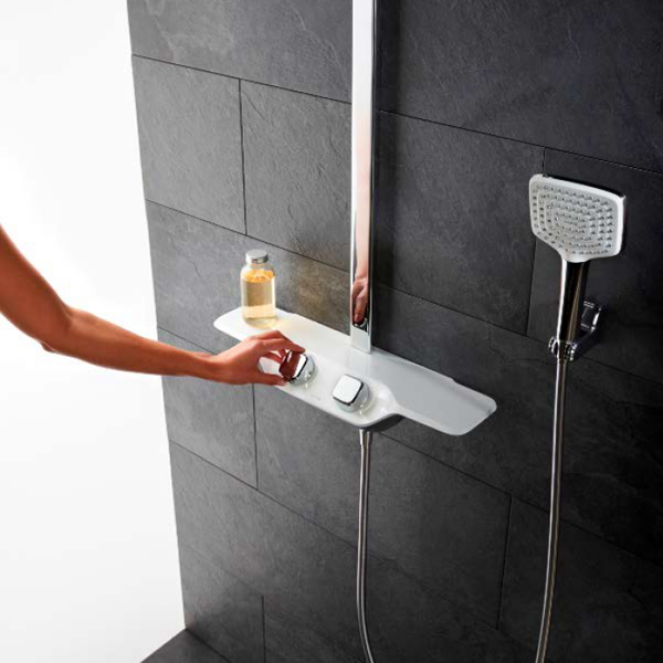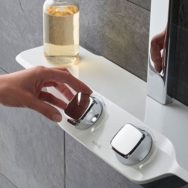 Душевая система с термостатическим смесителем верхним душем и полочкой белого цвета KLUDI Cockpit Discovery 8020091-00