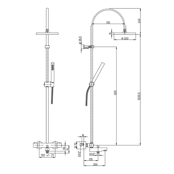 Диаметр лейки/тропического душа 200 мм