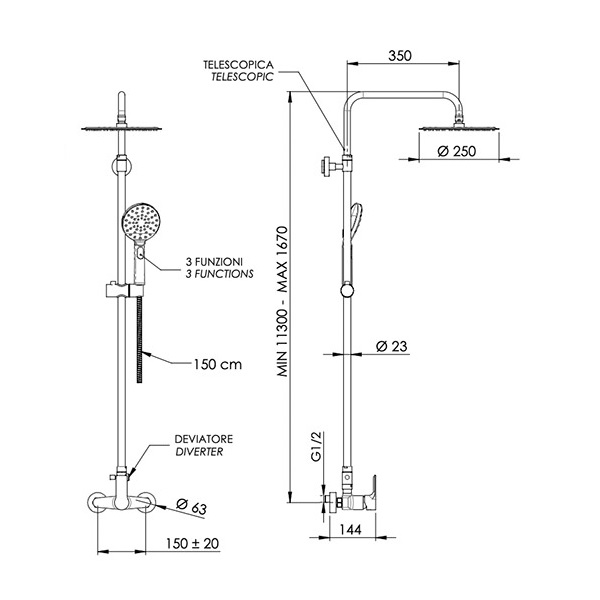 Душевая система REMER Energy 250 мм EY37A8MPUFM25G