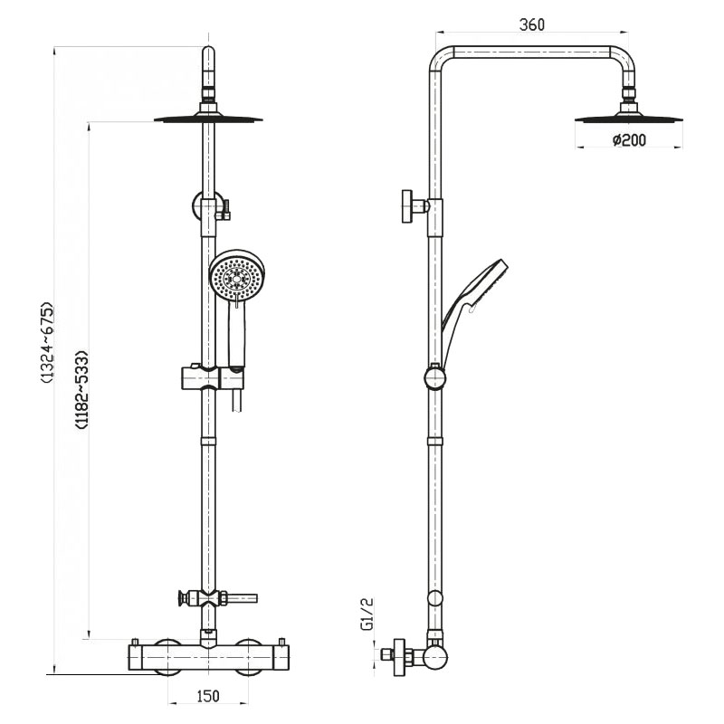 Оснащение: эксцентрики, дивертор, душевой шланг, душевая лейка, верхний душ, смеситель термостатический