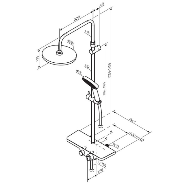 Душевая система с термостатическим смесителем DAMIXA Option 235 хром глянцевый 947760000