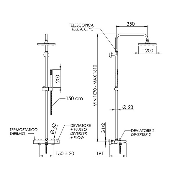 Душевая система с термостатическим смесителем для ванны REMER Elegance 200х200 мм хром глянцевый EQ34A7SDSD20