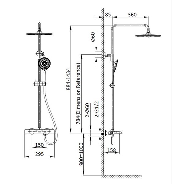 Душевая система с термостатическим смесителем для ванны VINCEA Esse хром глянцевый VSFS-1E1TCH: