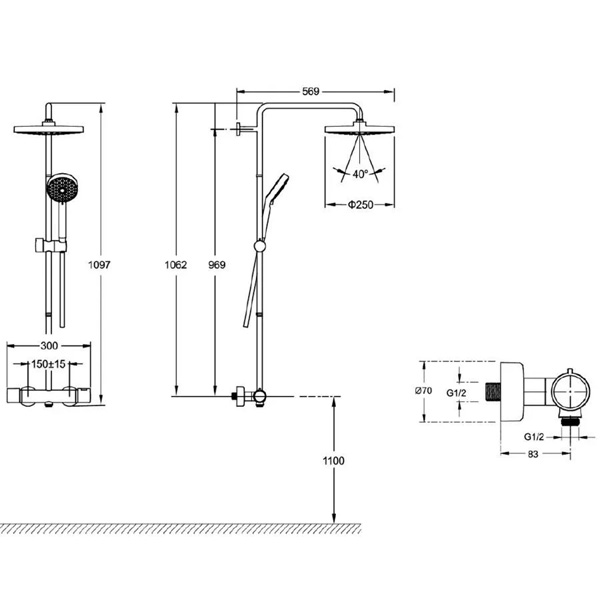 Душевая система с термостатическим смесителем JACOB DELAFON Atom 250 мм E26238-CPДушевая система с термостатическим смесителем REA Milan Chrom REA-P0222