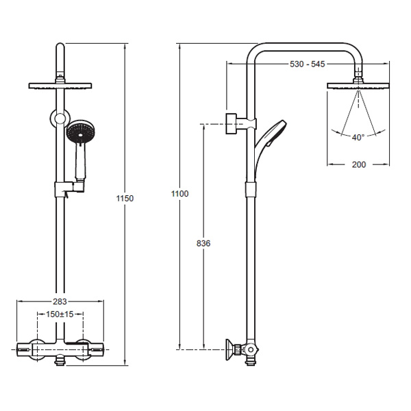Душевая система с термостатическим смесителем JACOB DELAFON July 200 мм E5523-CP: