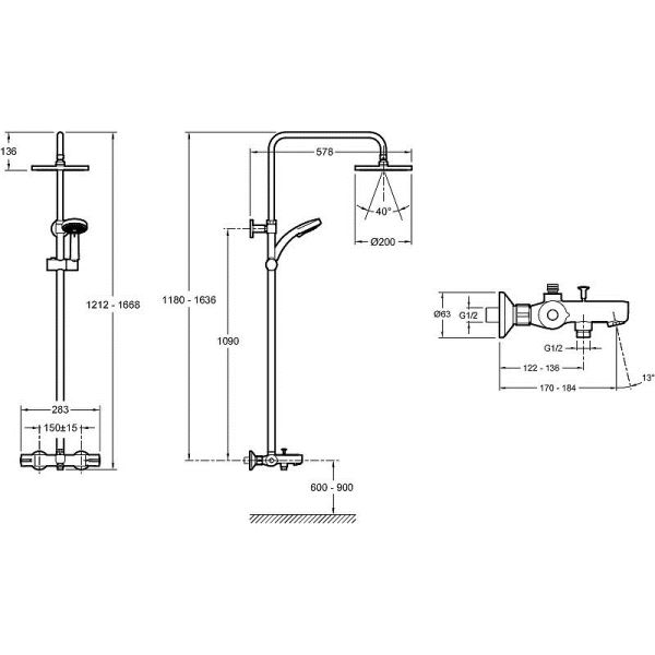 Душевая система с термостатом RAVAK Termo 300 TE 093.00/150 X070099Душевая система встраиваемая BOSSINI Cosmo 230 мм M00754.030