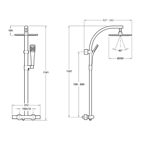 Душевая система с термостатическим смесителем JACOB DELAFON Talan 250 мм E11717RU-CP: