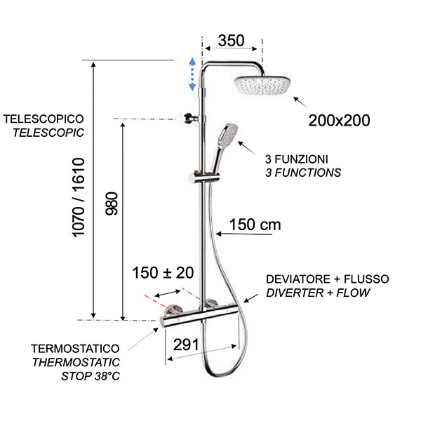 Душевая система с термостатическим смесителем REMER Elegance EQ32A8CPAD20: