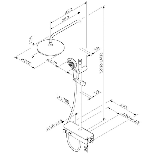 Душевая система с термостатическим смесителем REMER Elegance EQ32A8MPMD30Душевая система с термостатическим смесителем для ванны REMER Elegance EQ34A8MPUFM25G