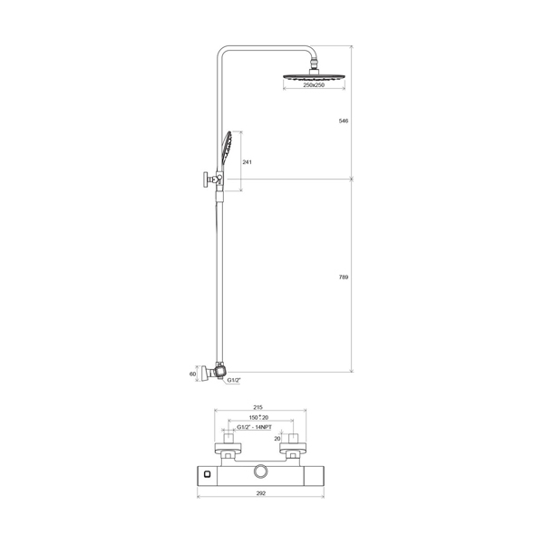 Душевая стойка с термостатическим смесителем и ручным душем TD 091.00/150 X070103