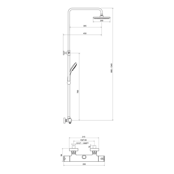 исполнение: диаметр верхнего душа 20 см; душевая штанга поворачивается в разные стороны