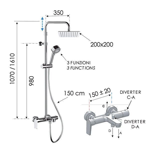 Душевая система со смесителем для ванны REMER Dream 200х200 мм D34AUFD20