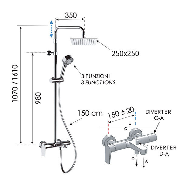 Душевая система со смесителем для ванны REMER Dream 250х250 мм D34AUFD25: