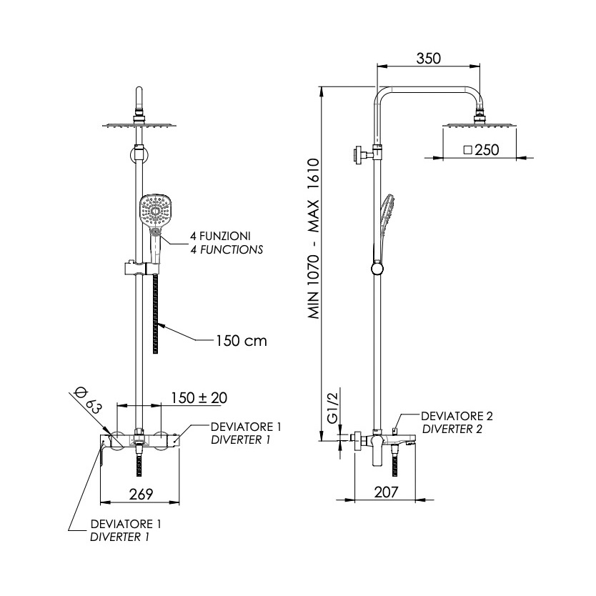 Душевая система со смесителем для ванны REMER Energy 250х250 мм EY34A8CPUFD25G: