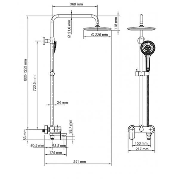 Стойка для душа, Ø 24 мм регулируемая по высоте
