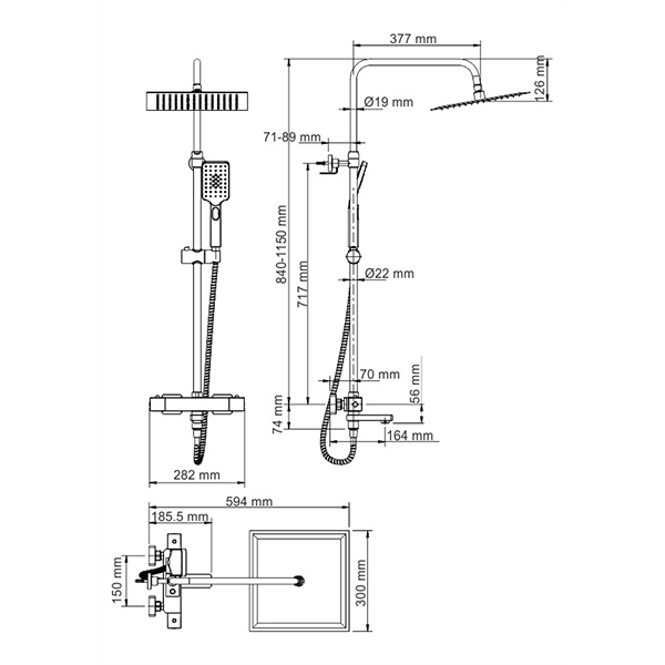 Стойка для душа, Ø 22 мм регулируемая по высоте