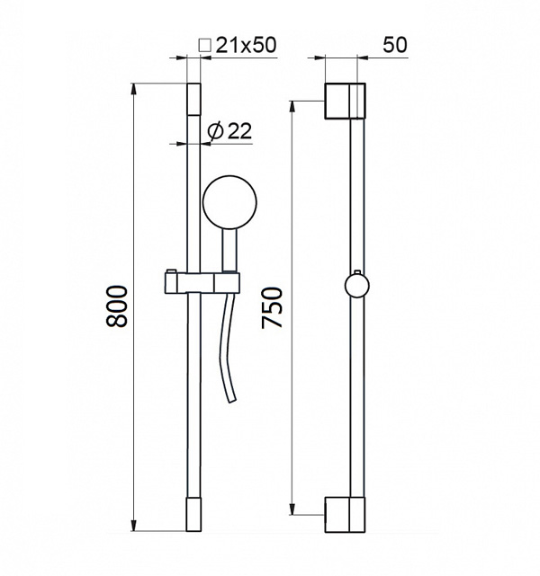 Душевая штанга с держателем ручного душа 800 мм